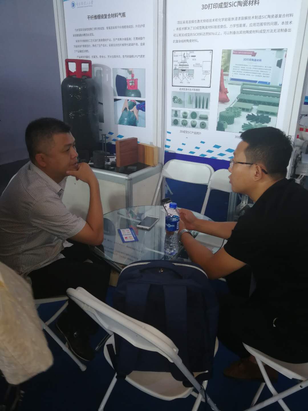 科交会上我校推荐的6个项目全部录入科交会成果名录库,其中3项展板展览项目分别为“干纤维缠绕复合材料气瓶”、“全自动秸秆板材生产线研制及产业化”、“大型干式空心电抗器匝间绝缘安全检测装置”;实物展示的3项成果分别为“稻草板”、“缠绕气瓶”、“3D打印成型SiC陶瓷样品”。