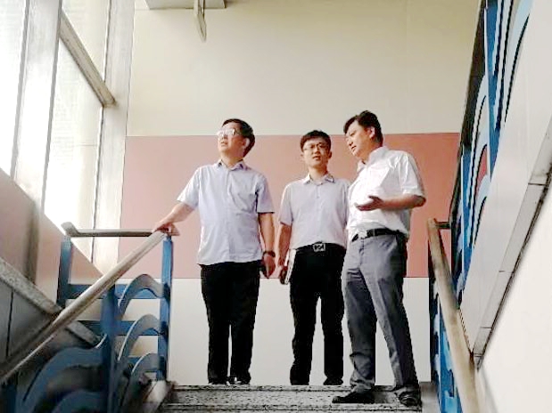 6月5日下午,副校长郭二军在资产运营管理中心主任曹乐松、副主任张宏磊的陪同下,走访了体育活动中心综合馆、训练馆、游泳馆、游泳馆地下室水处理设备间等重点部位。
