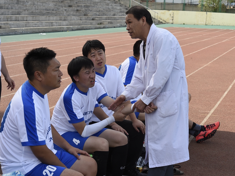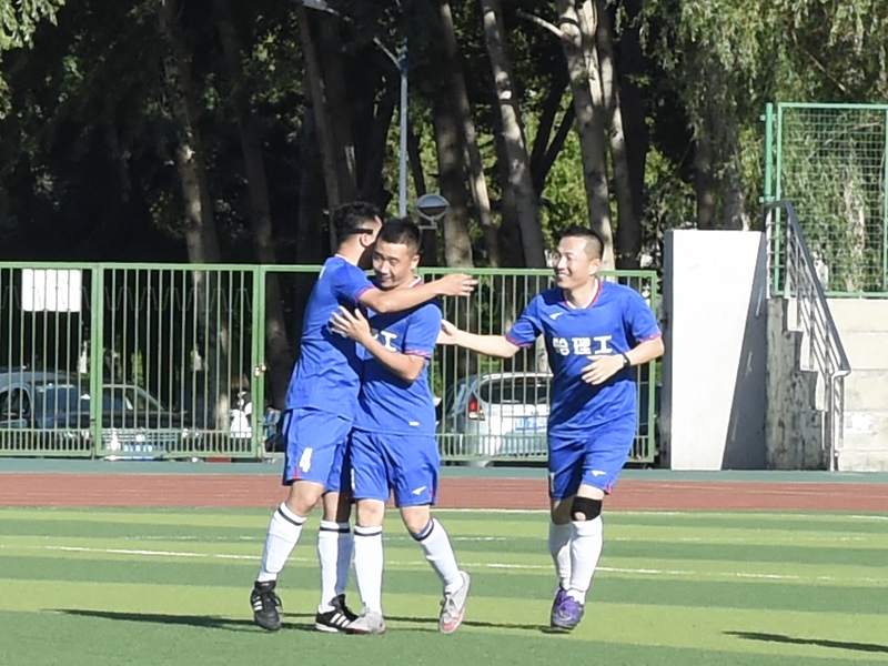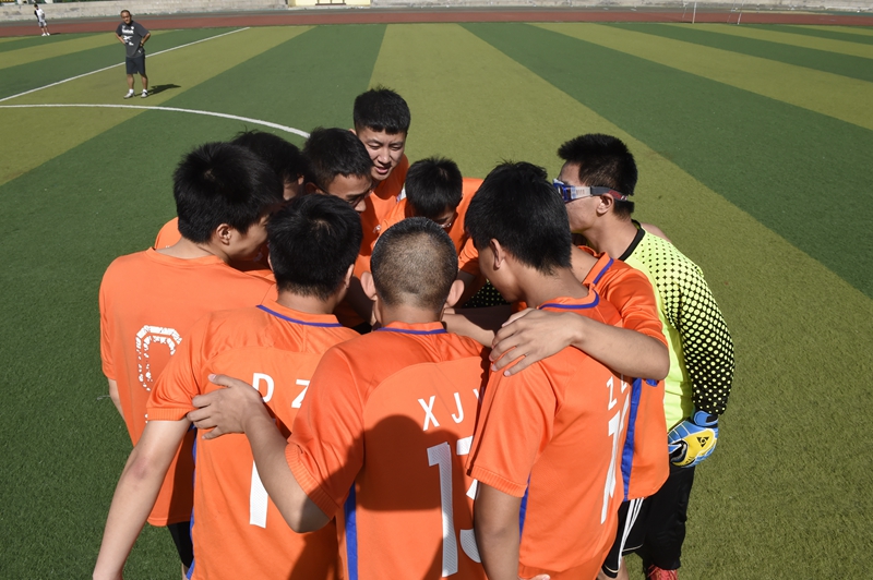 化工学院足球队队员互相鼓励