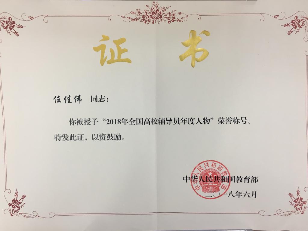 近年来,学校党委高度重视辅导员队伍建设,紧紧围绕立德树人这一根本任务,遵循思想政治工作规律,遵循教书育人规律,遵循学生成长规律,不断更新观念,创新方式,落实保障,完善机制,多措并举提升辅导员职业能力和水平,构建一条管理、成长、评价和输出的辅导员职业化、专业化成长路径。切实担起学生健康成长指导者和引路人的责任。任佳伟荣膺“全国高校辅导员年度人物”,是教育部对我校辅导员队伍建设工作的的充分肯定,彰显了我校辅导员队伍的整体水平和职业素养,也必将进一步激励广大辅导员在各自岗位上坚持“因事而化、因时而进、因势而新”的工作理念,真正做到围绕学生、关照学生、服务学生,培养德智体美全面发展的社会主义建设者和接班人,不断开创我校学生思想政治教育工作的新局面。