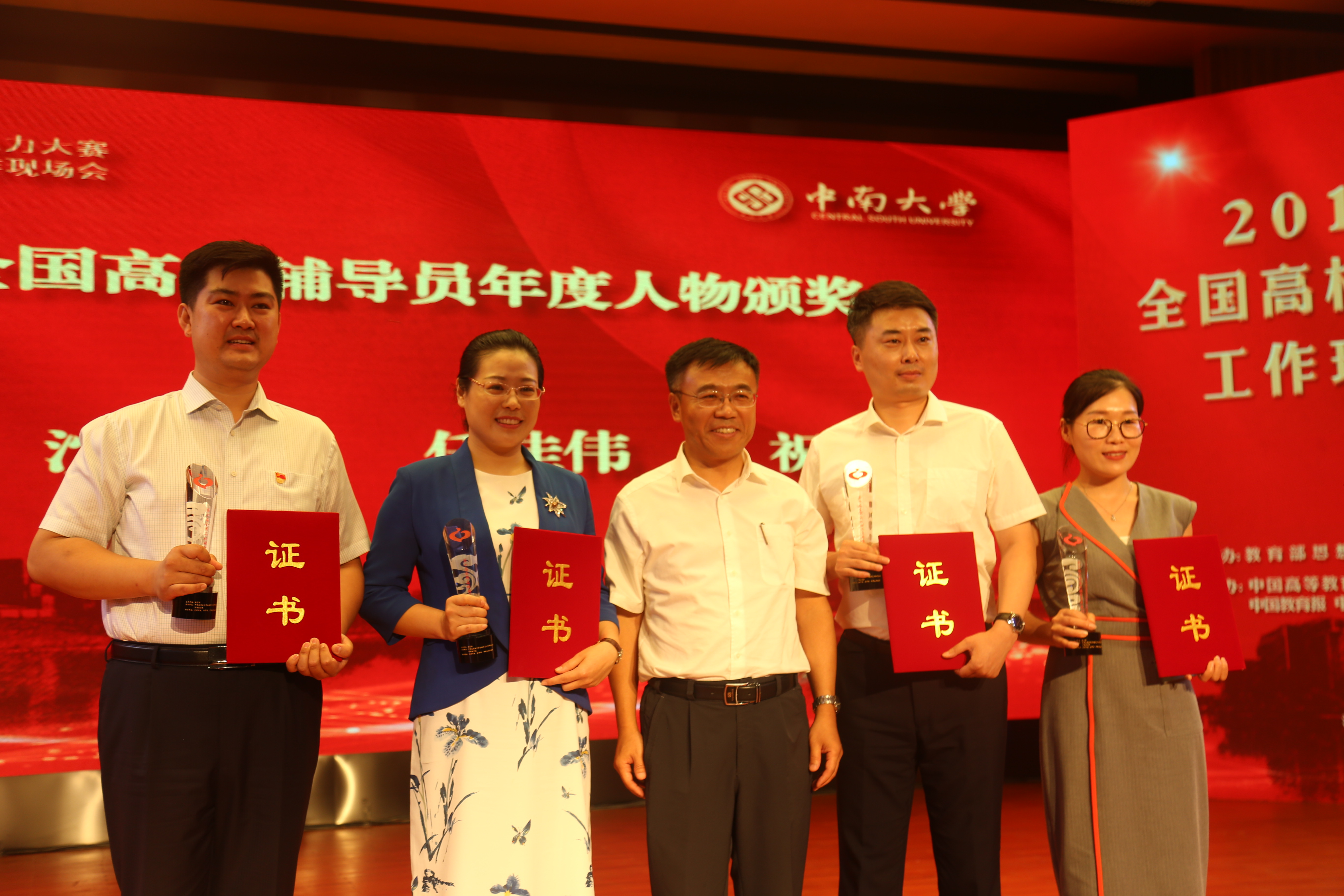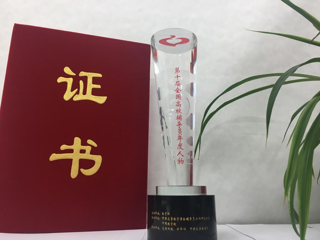 “第十届全国高校辅导员年度人物”荣誉证书及奖杯