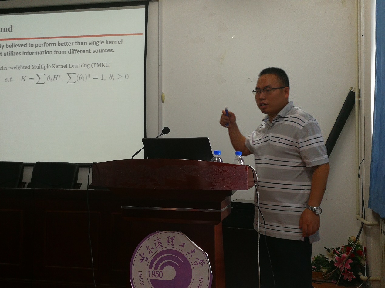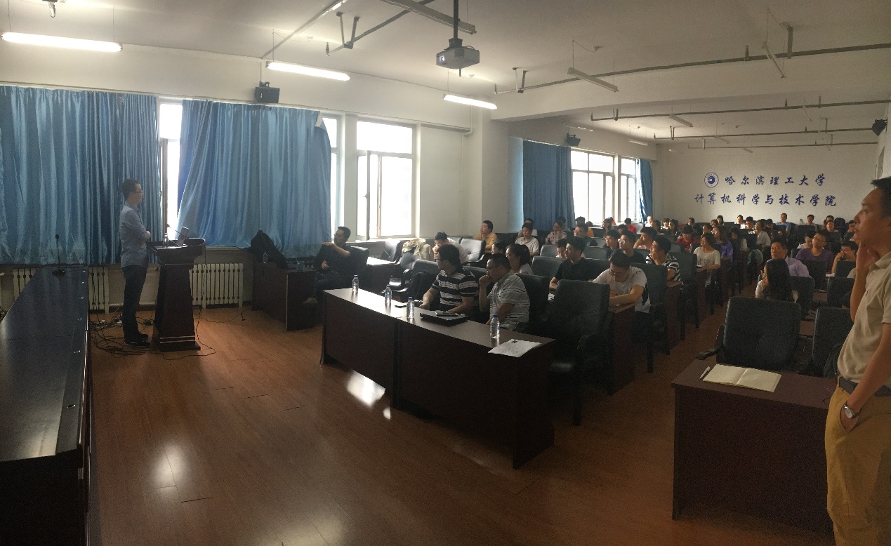 为促进我校师生在人工智能前沿领域方面的学术研究,计算机科学与技术学院于2018年6月25日在新主楼15楼E1523会议室举办了“人工智能前沿领域学术报告会”。受计算机学院副院长孙广路教授、计算机学院李骜博士的邀请,电子科技大学康昭博士、美国南伊利诺伊大学彭冲博士、中科院计算所王晋东博士分别进行了机器学习方法及其在计算机视觉应用方面的学术报告。报告会共有60余名师生参加,机械动力工程学院刘献礼教授也参加了报告会。