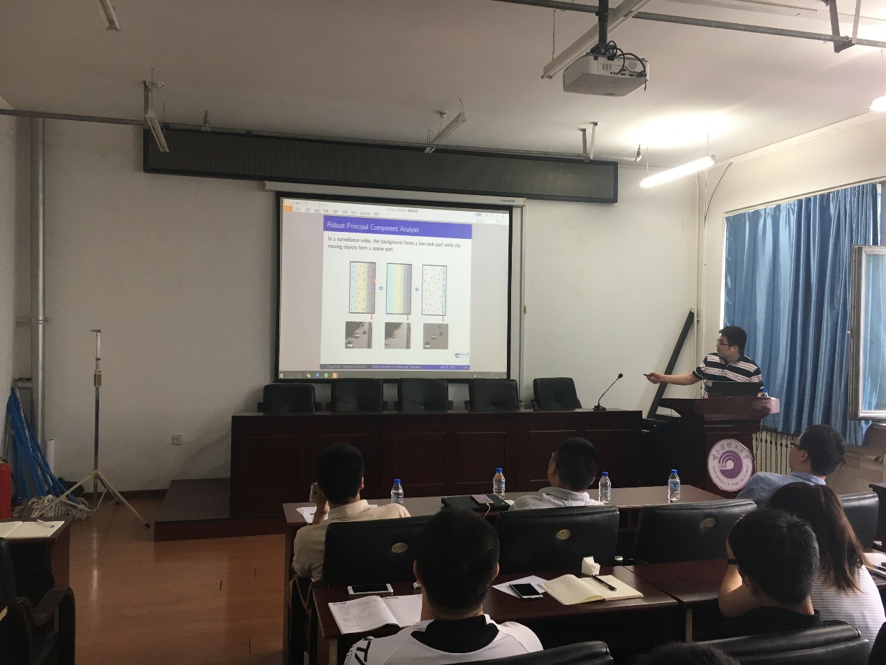 彭冲博士以“低秩模型在数据挖掘中的应用”为题,讲解了包括鲁棒性PCA、方差正则化岭回归、双边二维K均值和推荐系统的矩阵补全等方面的内容,并讨论了这些方法在计算机视觉及数据挖掘等问题中的具体应用。