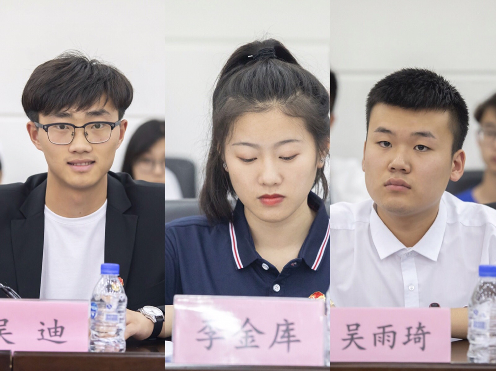 (校学生会主席吴迪、第五届研究生支教团成员李金库、测通学院吴雨琦)