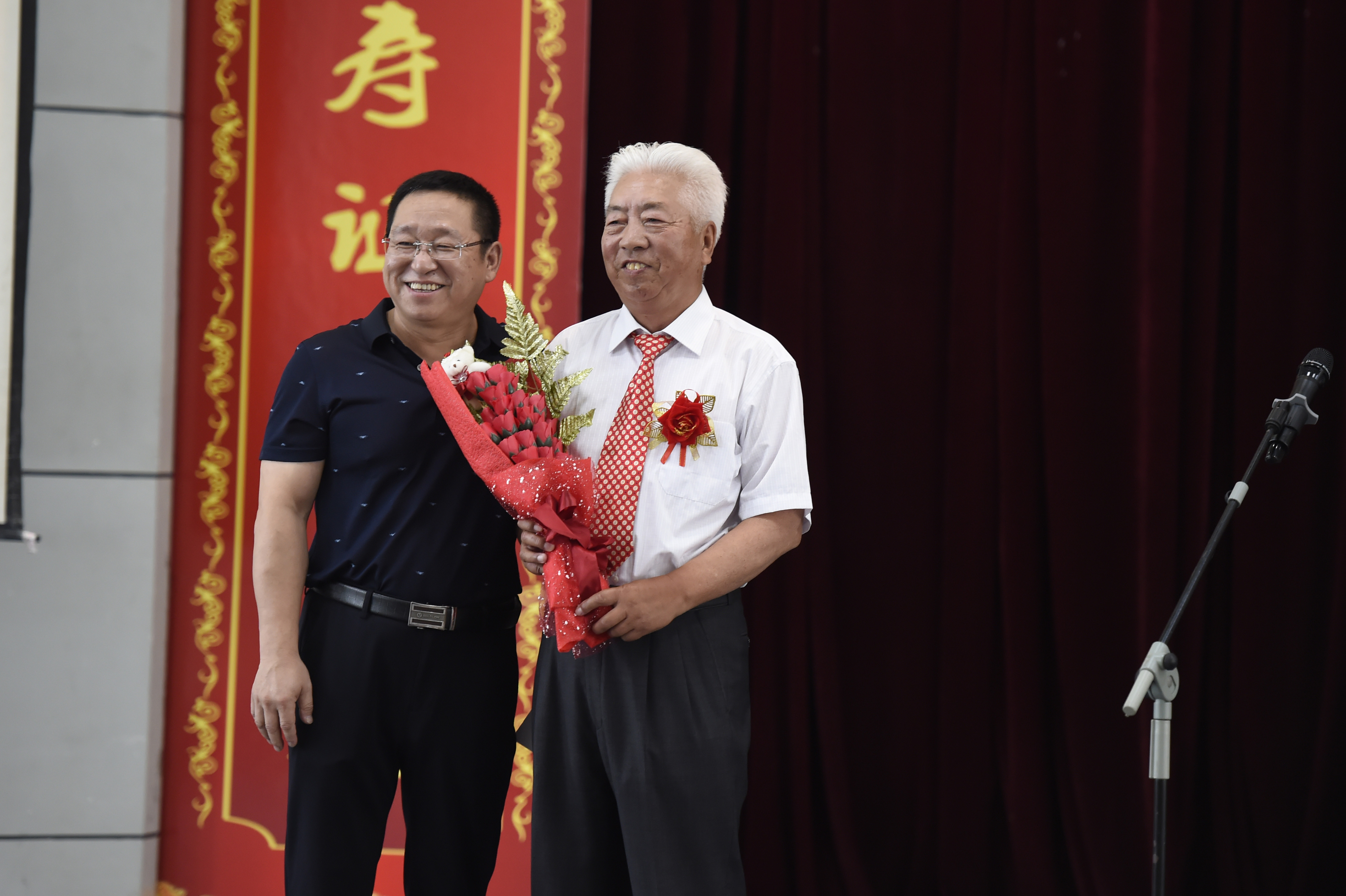 校党委副书记陆岩为寿星代表颁发寿带、寿盘