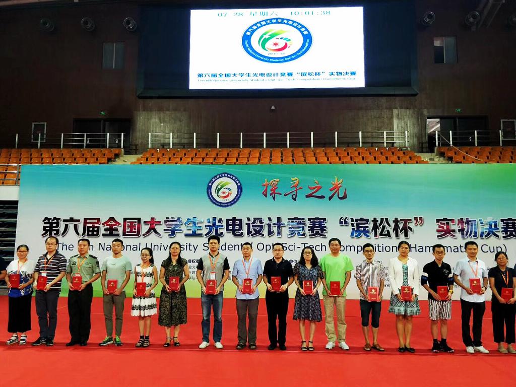 7月26-28日,光电相关领域规模最大、影响力最强的第六届全国大学生光电设计竞赛在北京理工大学成功举办。本次竞赛共有来自全国108所高校的392支队伍参赛,其中清华大学、浙江大学、华中科技大学、天津大学、国防科技大学、北京理工大学、大连理工大学、东北大学、哈尔滨工业大学、哈尔滨工程大学、长春理工大学等众多光电领域名校均派出了代表队。中国光学学会理事长、中国科学院院士、北京大学龚旗煌副校长,第六届全国大学生光电设计竞赛组织委员会主任、北京理工大学王晓锋副校长,中国工程院院士、北京理工大学周立伟教授,中国光学学会秘书长、2013-2017年教育部高等学校光电信息科学与工程专业教学指导分委员会主任委员、全国大学生光电设计竞赛委员会副主任刘旭,中国高等教育学会王小梅副秘书长,北京市教委高教处邵文杰处长,中国光学学会光学教育专业委员会主任委员、全国大学生光电设计竞赛委员会副主任郁道银,中国光学学会光学教育专委会秘书长郑晓东,中国高等教育学会工程教育专业委员会张聪,中国光学光电子行业协会秘书长王琳等出席了第六届全国大学生光电设计竞赛总决赛开幕式。我校派出的两支代表队在竞赛教师团队指导下脱颖而出,最终,获得了一等奖一项、二等奖一项的好成绩,并且一等奖参赛队以绝对优势与光电名校北京理工大学并列跻身前三甲,同时我校于雪莲、沈涛、浦绍质三名教师获得优秀指导教师称号!这是我校代表队继第五届全国大学生光电设计竞赛二等奖后的又一突破性佳绩!再一次增加了哈尔滨理工大学在全国光电竞赛中的影响力。
