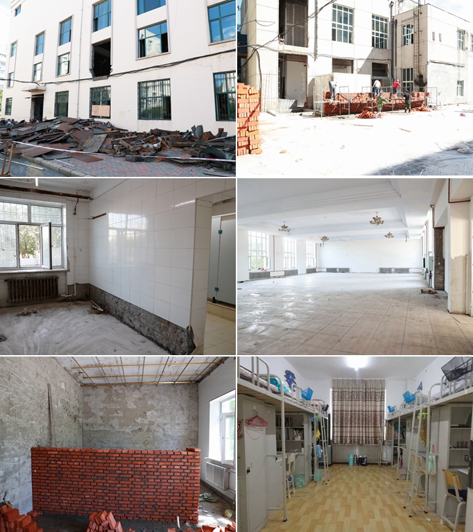 在西、南两区学生公寓,学校领导查看了相关公寓厕所增加蹲位改造情况,检查了公寓安全卫生整改落实情况,对部分寝室漏雨长毛、门窗破损的问题给予了维修整改意见。学校领导强调,寝室是学生在学校的家,学校要按照相关标准彻底解决公寓厕所蹲位不足、跑冒滴漏、寝室发霉长毛等问题,对公寓老旧设施进行升级改造,配齐配全各项设施,加强学生公寓管理,制定长效机制,多级联动,从根源上解决寝室脏乱差等突出问题,充分发挥好学生公寓管理育人的功能,为学生营造温馨舒适的学习生活环境;在西区二食堂改造现场,学校领导了解了改造进度,查看了功能区的划分,检查了改造工程质量。学校领导强调,食堂改造要在确保学生食堂面积满足学生用餐需求的前提下,加强后续的管理、维护和运营,保证食堂设施、设备规范整洁,通风顺畅,保证学生伙食价格、质量、数量平稳,同时也要满足师生多样化的饮食需求,强化食堂监管,保障卫生安全、食品安全、饭菜价格和服务质量;在西区锅炉房改建学生浴池和南区学生浴池升级改造现场,校领导一行听取了升级改建情况汇报,详细询问了改造环节,认真查看了工程的施工质量,并对浴池后续运行保障方案的实施做出进一步指示。学校领导强调,学生浴池改建要严格按照省委相关文件要求,做到浴池面积、喷头数量达标,配套实施健全,管理措施到位,维修保养及时,为广大学生提供一流的设施和高效的服务,切实改善学校学生洗浴环境。