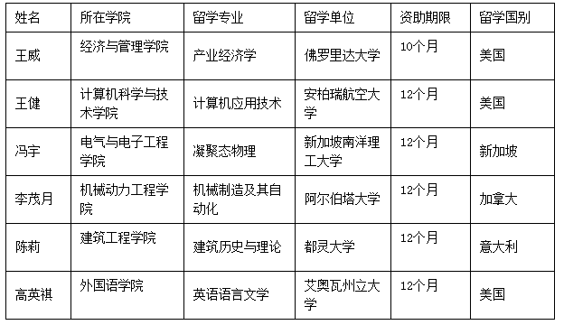 根据国家留学基金委发布的通知,在2018年国家留学基金资助出国留学选派工作中,我校6名教师(名单如下)获得2018年地方合作项目资助,以访问学者身份赴国外大学研修。