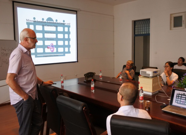受理学院计东海教授的邀请,我校荣誉教授、德国凯姆尼兹工业大学教授Horst Martini先生来校访问并做了题为“Minsum location extended to gauges and to convex sets”的学术报告,并就相关问题与在场的青年教师和研究生进行了深入地探讨。