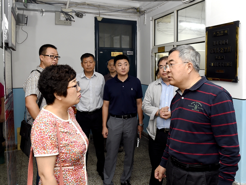 学校办公室主任郗朝晖、后勤管理处处长安文斌、保卫处处长范洪涛、学生处副处长蔡野等陪同检查。