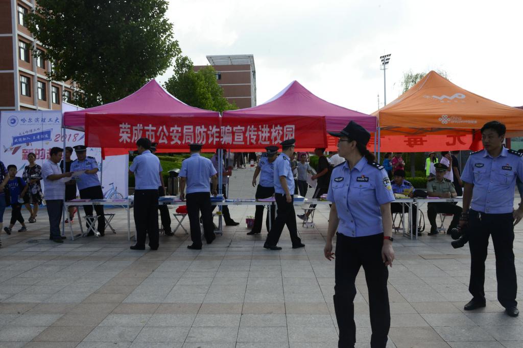 围绕校园安全稳定,学院与荣成市相关职能部门协力合作,共同服务新生入校。荣成市交通局交警在学院南门指挥交通协助校方完成迎新工作;荣成市公安局派出民警到学院进行防诈骗宣传,向新生及家长讲解有关防诈骗的知识并发放防诈骗宣传单;为了维护迎新期间校园治安稳定,青鱼滩派出所及保卫办公室全体教职工分布在校园各迎新接待点,确保迎新工作安全顺利进行。