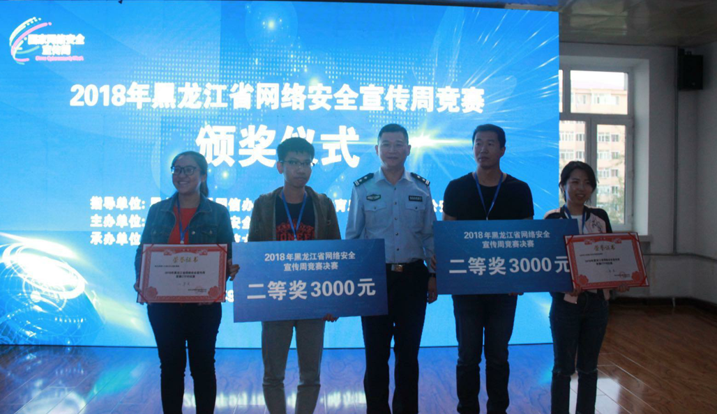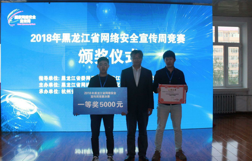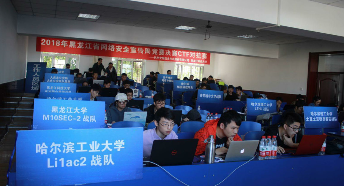 由中共黑龙江省委网信办、黑龙江省教育厅、黑龙江省公安厅主办,黑龙江科技大学承办的2018网络安全宣传周竞赛决赛CTF对抗赛2018年9月18日在黑龙科技大学举行,我校计算机学院学生组成的两支参赛队经过5小时攻防对抗,分别获得一等奖(冠军)和二等奖。