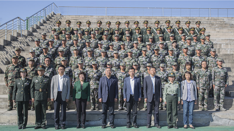 开学典礼暨军训成果汇报大会结束后,校领导和与会嘉宾与参训教官合影留念。(摄影:刘畅 黄恺 大学生记者团)