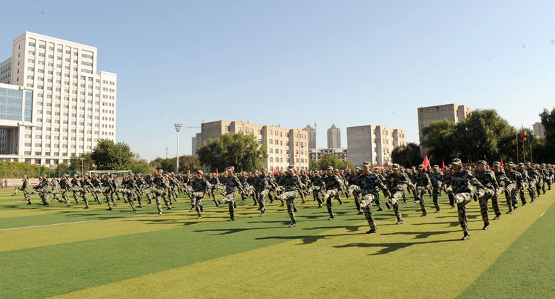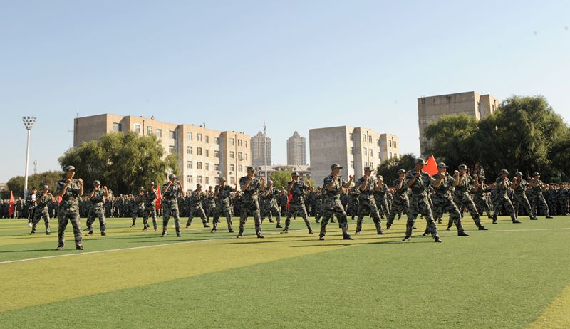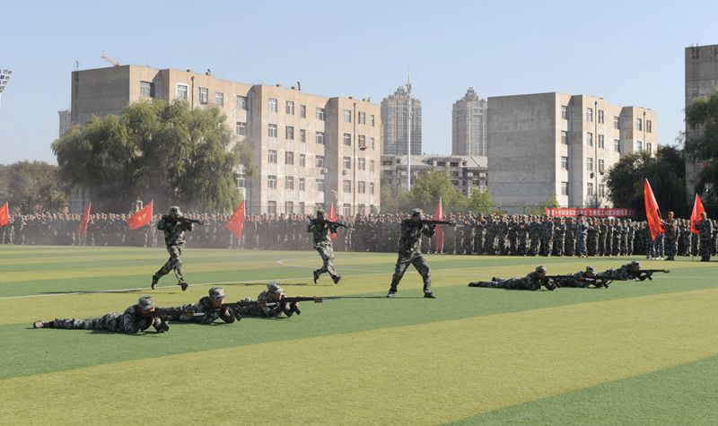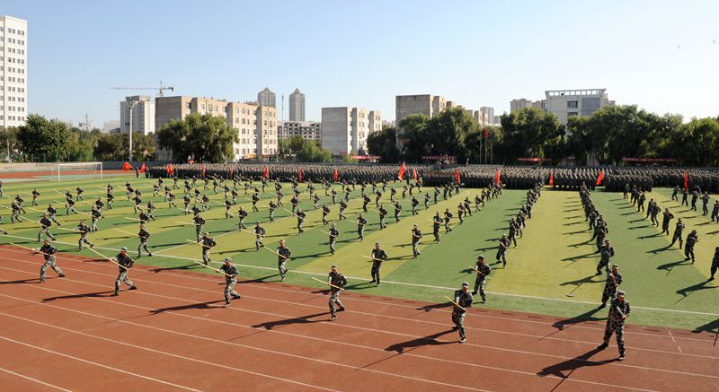 东西南三校区各学院分列式依次接受主席台领导的检阅。分列式结束后进行了内务、擒敌拳、棍术、匕首操、特战汇报表演。其中,由我校2018级新生经过刻苦训练呈现的特种战术表演,因形式新颖、动作生动而备受现场领导和师生的关注。