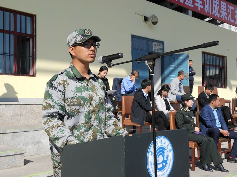 校长周宏力在大会上讲话。周宏力指出,在带训教师的精心组织、教官们的悉心指导、各部门的通力配合、全体参训同学的刻苦努力下,圆满地完成了各项训练任务。2018级新生们在此次军训中充分展现了自己直面挫折的信心和勇气、战胜困难的意志和能力,展现了新一代理工学子良好的精神风貌,顺利完成了入学以后的第一份答卷。周宏力代表学校向为这次军训付出辛勤汗水的教官们致以崇高的敬意,向始终服务在第一线的带训教师表示衷心的感谢,向全体参训同学致以亲切的问候,向受到表彰的班级和优秀学员表示热烈的祝贺!