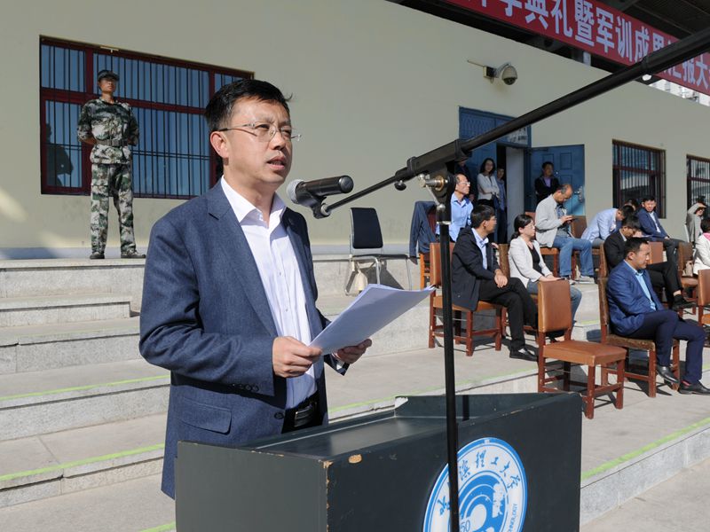 9月20日8时,我校2018级学生开学典礼暨军训成果汇报大会在南区运动场举行。学校领导张洪涛、周宏力、陆岩、杨春、王志浩、房文斌、刘胜辉,省教育厅体卫艺处副处长李建民,省军区学生军训办参谋王哲上校出席大会。各学院相关负责人、马克思主义学院全体教师、军训师成员、2018级5000余名新生参加了大会。马克思主义学院院长张立双担任阅兵总指挥。大会由校党委副书记陆岩主持。