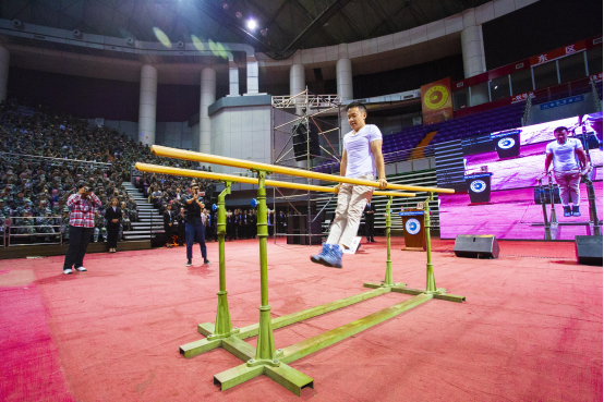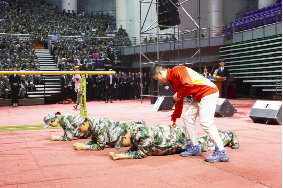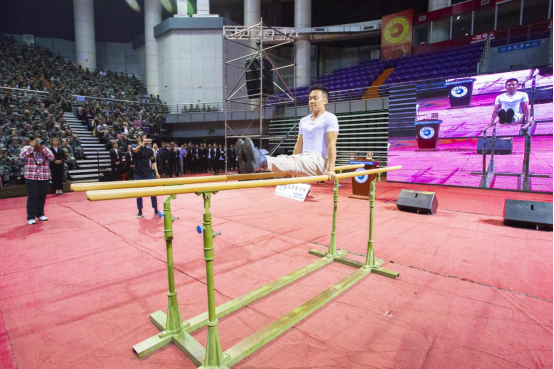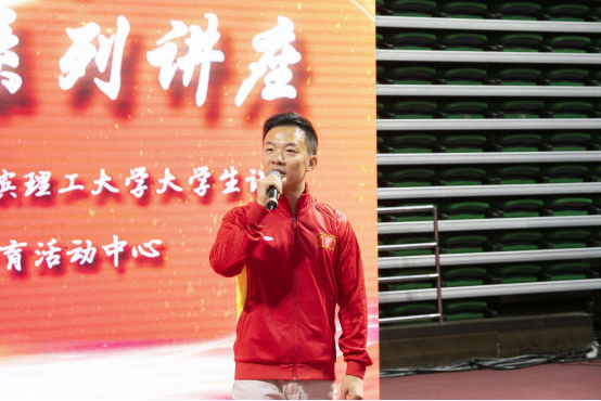 坚持和努力对于成功来说永远必要。郭伟阳以《超级替补——前行即有光》为题,从他自身经历说起,从小先天体弱多病的自己被父母送到体育训练中心学习体操,在教练眼中,他并不是从事体育的好苗子,也是队中最不起眼的那个。但先天条件的不足,并没有成为他放弃的理由。他没有出众的体操天赋,只有比其他人更多的努力。他讲到“成功是99%的努力和1%的天赋”这句话是讲给有天赋的人,对于没有天赋的人就要200%甚至1000%的去努力。也正是这样的努力使得他成为全国体操锦标赛中蝉联三年男子个人全能冠军;荣获2012年伦敦奥运会中国男子体操队奥运冠军。他鼓励现场的同学们,要在最好的年华抓住机会,努力拼搏,梦想就会实现。风雨彩虹,郭伟阳用自己的亲身经历为大家讲述了“每个人都能创造奇迹”的含义,并希望刚刚入学的理工学子都能热爱运动,养成热爱运动的习惯,通过运动磨砺人的心性,锻炼人的意志,锤炼人的精神,磨练人的合作,以良好的身心素质筑梦美好的人生远航。讲座之后郭伟阳为全体大一新生展示了体操双杠表演,并亲自指导大家马步、平板支撑和双杠训练,与同学们互动并送上亲笔签名照片,鼓励大家要坚持运动,斗志昂扬。分享最后他为全体新生送上青春寄语:“不畏困难找理由,只为成功找方法”。活动期间,全体新生热情互动,掌声不断,欢呼热烈。