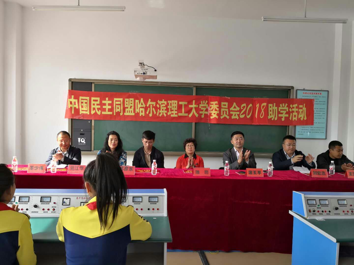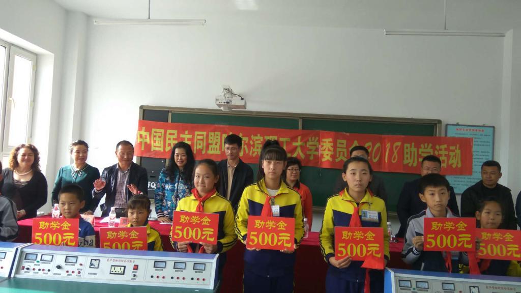 民盟哈尔滨理工大学委员会主委葛江华讲话。葛主委表示,扶贫工作不仅是党内的一项长期任务,各民主党派也是该项工作的一支重要力量,民盟作为全国最大的民主党派有责任、有义务在扶贫工作中发挥重要作用。民盟哈尔滨理工大学委员会始终致力于服务社会,希望通过此次助学捐助活动,能够助力丰乐乡扶贫工作,帮助经济困难的学生完成学业。她指出,此次助学活动只是一个开始,一定要将所见所闻向全校100余名盟员进行传达。今后,民盟哈尔滨理工大学委员会要主动发挥教育、科技优势,帮助贫困地区和贫困学生实现脱贫摘帽。