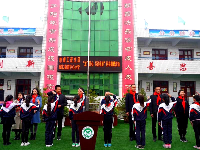 在全国第5个扶贫日、第26个国际消贫日来临之际,近日,我校第五届研究生陕西长武支教团结合服务地学校实际继续开展“松果计划”——农民工子女助学帮扶行动,携手中国光华基金会“公益书海工程”项目为长武县昭仁街道中心小学和实验小学募捐图书总金额41794.6元,本次活动以爱心图书阅读为载体,鼓励学生成长思源、成才思进,助力西部地区教育精准扶贫。共青团长武县委员会、长武县教育局、昭仁街道中心小学、实验小学相关负责人参加本次捐赠仪式。