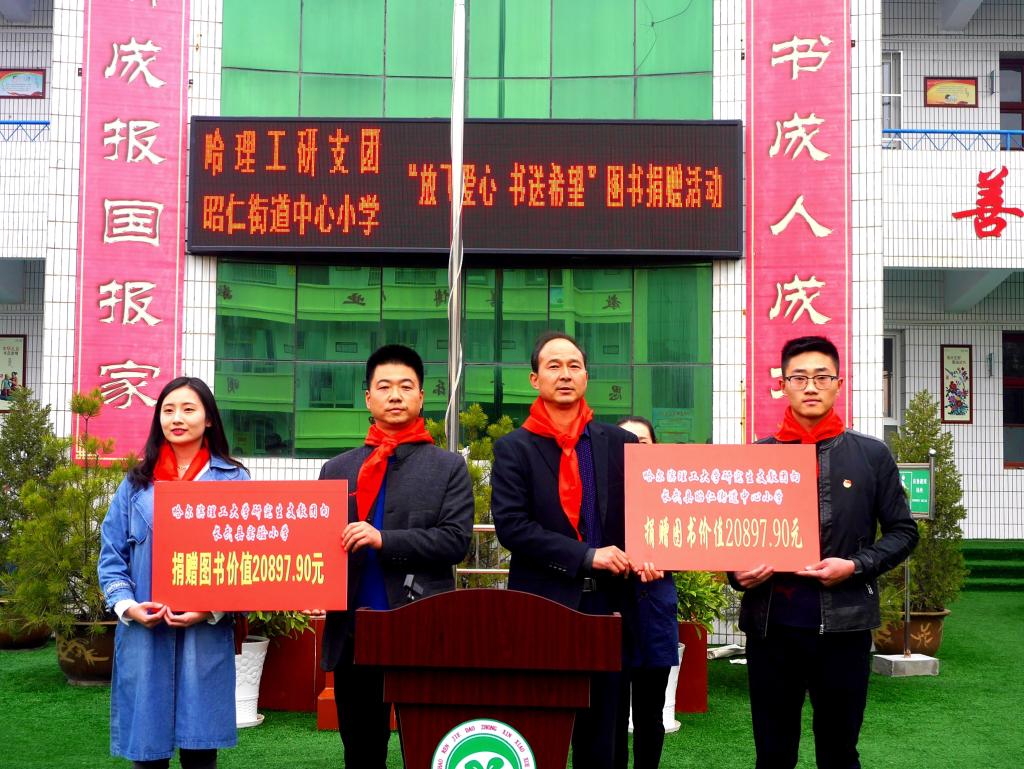 陕西长武县招生办主任惠俊宏在捐赠仪式上说:“捐资助学,功在当下,利在千秋。受助的学习要好好利用这些资源,精心设计,合理分配,让更多学生参加读书活动,让读书丰富学生的知识、发展其能力、提升其人格,从中获取知识、汲取营养,让我们的校园充满书香气息。”哈尔滨理工大学第五届研究生支教团队长吴迪表示:关注西部贫困地区教育事业,共享社会发展成果是全社会共同的责任。此次我校研支团利用品牌活动“松果计划”发起“放飞爱心,书送希望”活动为两所小学捐赠书籍,以实际行动参与到教育扶贫的各项活动中来,助力长武教育事业拥有新突破。请各位领导老师放心,我们一定严格要求自己,秉承志愿服务精神,牢记青春使命,牢记母校嘱托,脚踏实地,恪尽职守,虚心请教,认真教学。