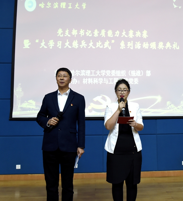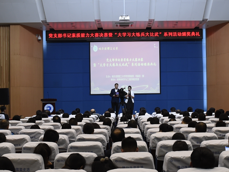 11月9日,由校党委组织(统战)部主办,材料科学与工程学院党委承办的“党支部书记素质能力大赛决赛暨‘大学习大练兵大比武’系列活动颁奖典礼”在教学主楼五楼报告厅举行。校党委书记张洪涛,学校办公室主任郗朝晖,党委组织(统战)部部长刘侠,校团委书记姜国玉,党委学工部副部长张颖出席本次大会,全校基层党组织书记、主管学生工作副书记、全体党支部书记及全体辅导员老师共计三百余人参加了此次大会。