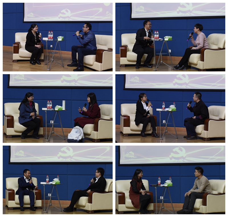 在谈心谈话环节,组委会聘请专家结合教工支部工作中面临的现状和实际问题设计了参赛题目,选手们现场抽取题目,保证了大赛的公平公正,同时也真正考验了参赛选手们理论结合实际解决问题的能力。来自自动化学院的隋然、新疆内派教师杨琳、测通学院李美薇、材料学院刘元昊、外国语学院王宏建、测通学院牛諶訦友情担任助演嘉宾,他们分别代入角色,将支部工作中存在的非积极因素演绎得淋漓尽致,成功为参赛选手制造难题,给所有参赛选手带来较大挑战。参赛选手在此环节,结合党章,紧扣党员的权利和义务,结合日常工作经验与所掌握的相关理论政策,或晓之以情、动之以礼,或义正严词、刚正不阿,他们分别用自己的工作方式化解难题,谈心谈话环节中选手和演员精彩的对话将比赛推向高潮。