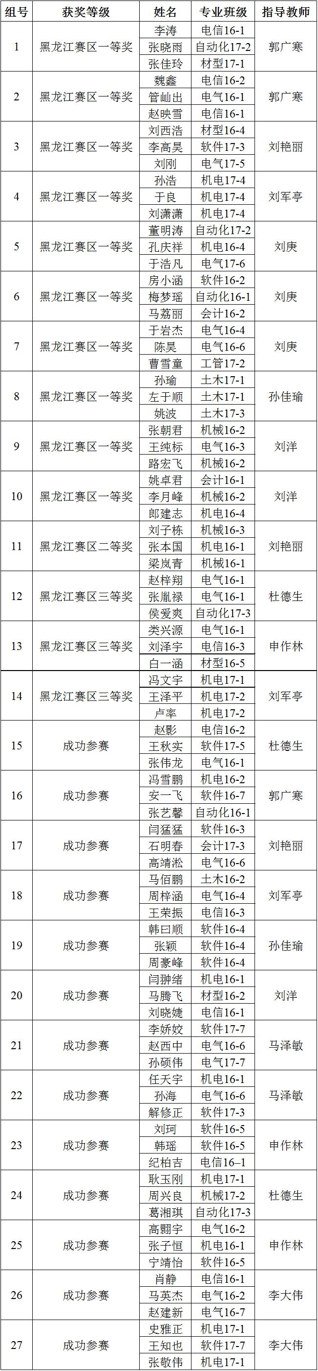 2018年全国大学生数学建模竞赛于9月13日至16日在荣成学院举行,荣成学院共27支代表队参加本次比赛。在本次竞赛中,荣成学院共获得了黑龙江赛区一等奖10项、黑龙江赛区二等奖1项和黑龙江赛区三等奖3项。