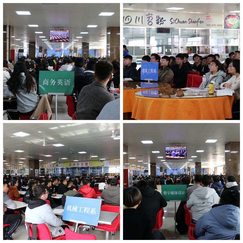 学院领导在食堂与学生共同收看庆祝改革开放40周年大会直播