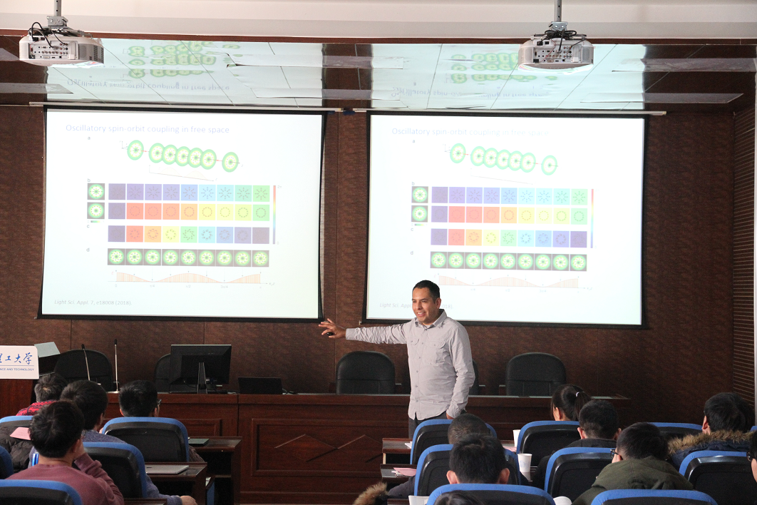 高玮主任首先介绍了重点实验室在凝练科研方向、组建科研团队、建立管理机构、制定管理办法和实验设备共享等方面所做的工作,并强调量子调控重点实验室是物理系重要的科研平台,希望实验室师生要倍加珍惜重点实验室带来的机遇和资源,群力群策建设好实验室。计东海院长在讲话中充分肯定了重点实验室一年来在人才培养、高水平成果产出、科研方向凝练、科研团队培育等方面的显著成效,强调了学术交流、科研合作的重要意义,希望实验室成员们勇于创新、全面提升科研层次,最后预祝本次论坛圆满成功。开幕式后,诺贝尔奖引力波发现论文作者之一范锡龙教授做了题为《引力波探测和引力波天文学简介》的学术报告,实验室全职引进的Carmelo Rosales Guzman教授做了题为《A new light on optical metrology》的学术报告。我校兼职教授、中科大史保森教授和丁冬生教授分别做了题为《基于涡旋光场的量子信息研究》和《基于里德堡原子多体相变的实验研究》的学术报告。会场交流热烈,学术氛围浓厚,使在座的师生开拓了眼界,受益匪浅。