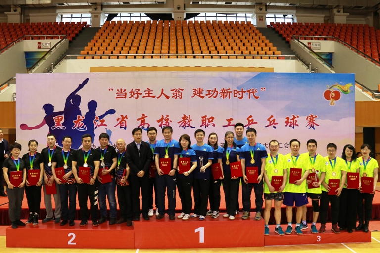 为丰富全省高校教职工文化生活,提高教职工健康素质、振奋精神,以更加昂扬的精神风貌迎接建国70周年,由黑龙江省教科文卫体工会主办,黑龙江大学工会承办的“当好主人翁、建功新时代”全省高校教职工乒乓球赛于2019年3月16日在黑龙江大学体育馆胜利闭幕。