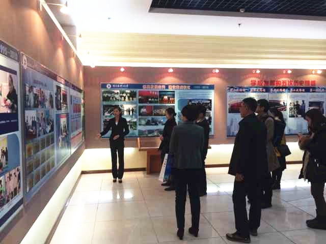 11月3日,台湾中华两岸教育文化交流学会代表团一行9人在学校国际合作与交流处副处长邵阳的陪同下,参观了校史馆,校史馆学生讲解团队成员王婷婷为代表团一行进行了讲解。