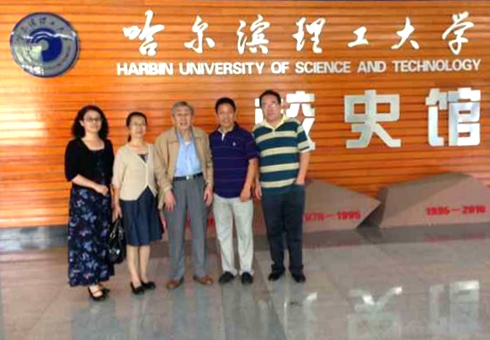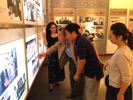 在参加王大珩先生铜像揭幕仪式和纪念大会后,9月17日上午,王大珩的学生、技术物理系79级校友王淑荣(现任中科院长春光机所学科带头人,博士生导师)、技术物理系79级校友谢冀江(现任中科院长春光机所研究员、中国光学学会会员、美国光学学会会员)与曾经教过他们的老师赵成文、殷景华(原应用学院党总支书记)在校友办张浩南的陪同下参观了校史馆。